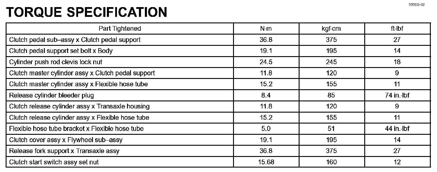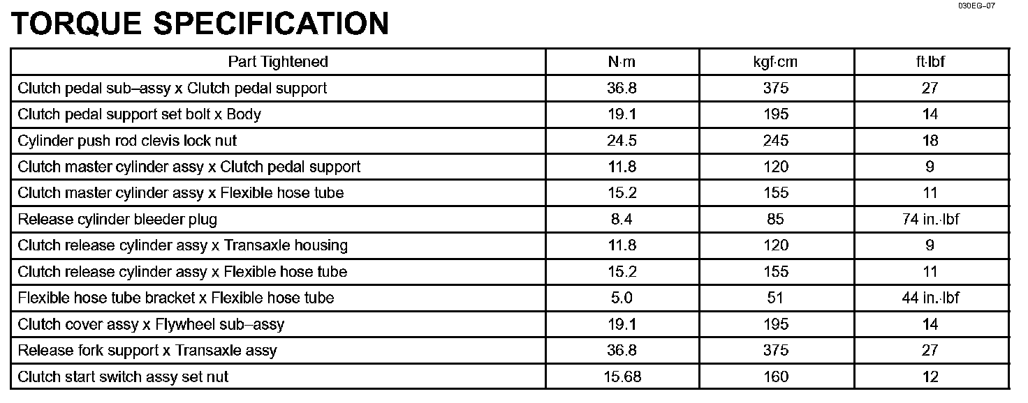 Clutch - Torque Specification: