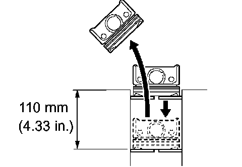 Using a piston, push the piston ring a little beyond the bottom of the ring travel, 110 mm (4.33 inch) from the top of the cylinder block.