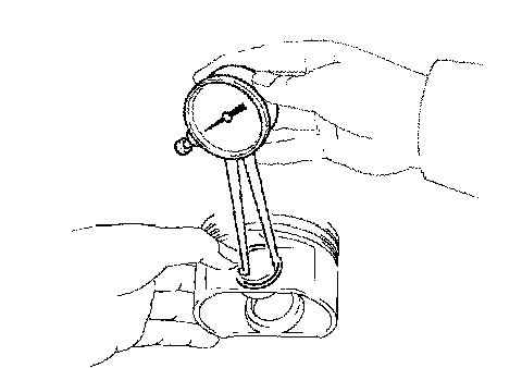 Using a micrometer, measure the piston diameter at right angles to the piston pin hole, and at the piston 12 mm (0.472 inch) from the piston head.