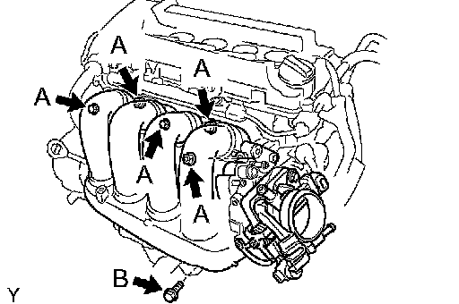 Install the manifold stay with the 2 bolts and nut.