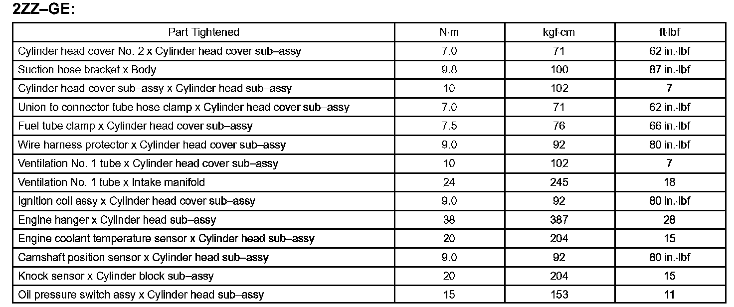 Engine Mechanical - Torque Specification Part 3: