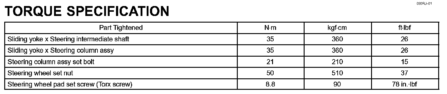 Steering Column - Torque Specification: