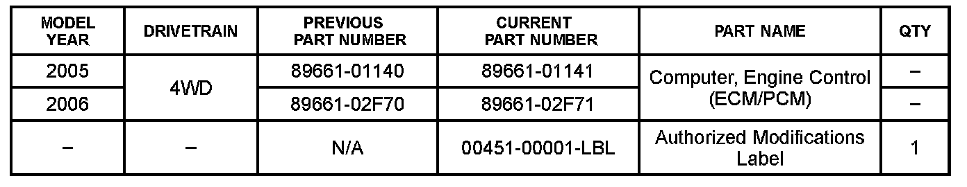^ Authorized Modification Labels may be ordered in packages of 25 from the Materials Distribution Center (MDC) through Dealer Daily Dealer Support Materials System, or by calling the MDC.