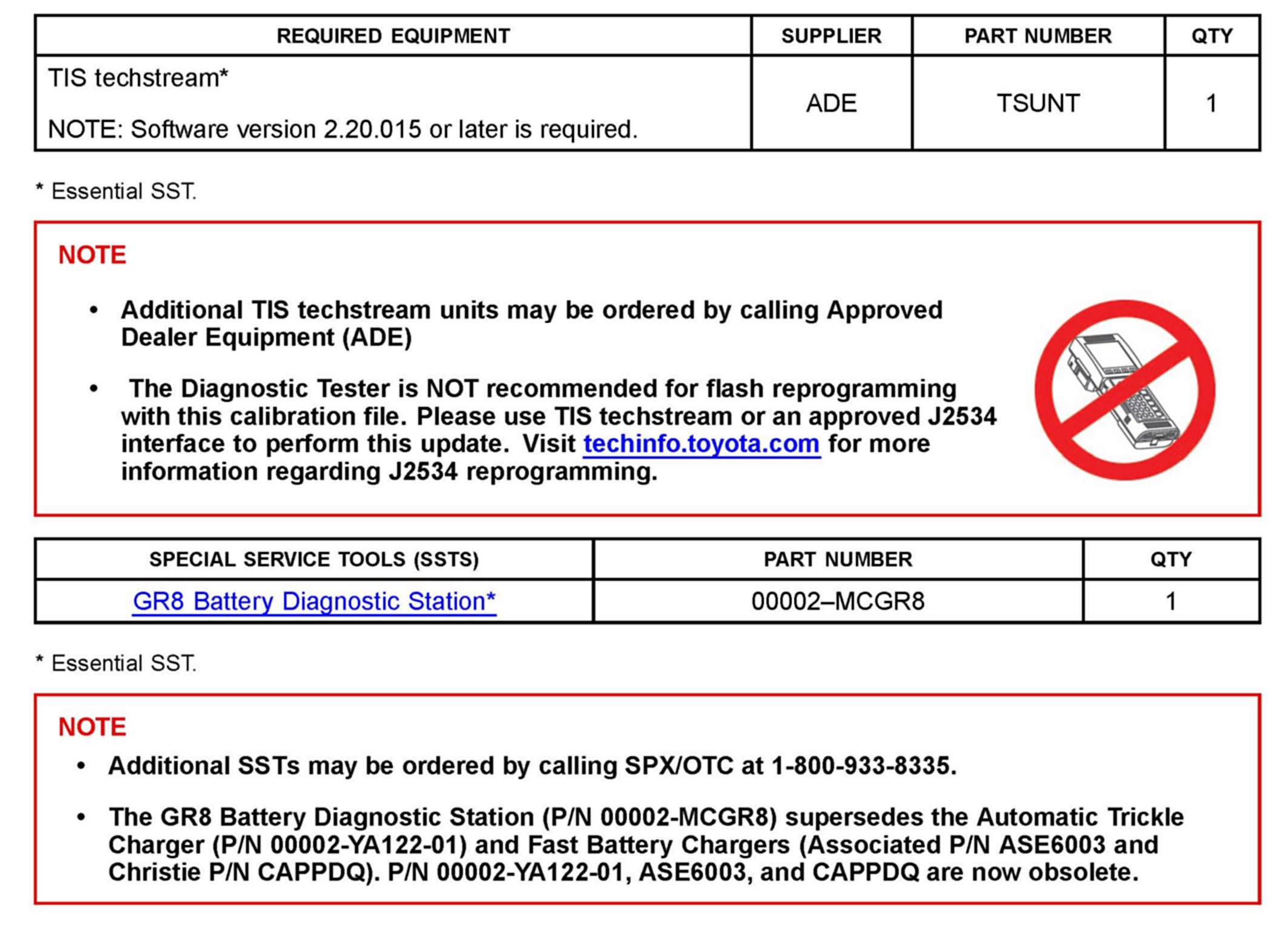 ^ For details on how to use the GR8 Battery Diagnostic Station, refer to the located on the Technical Information System (TIS), Diagnostics - Battery.