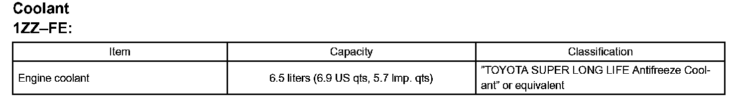 Cooling - Coolant: