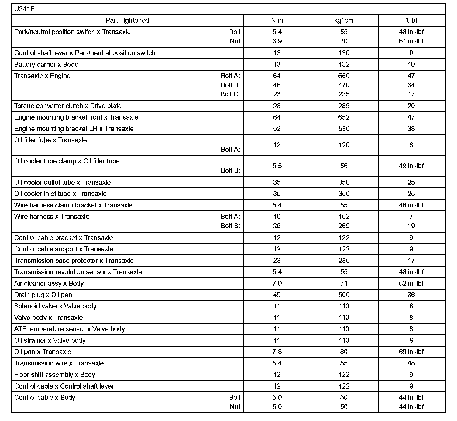 Automatic Transmission/Transaxle - Torque Specification: