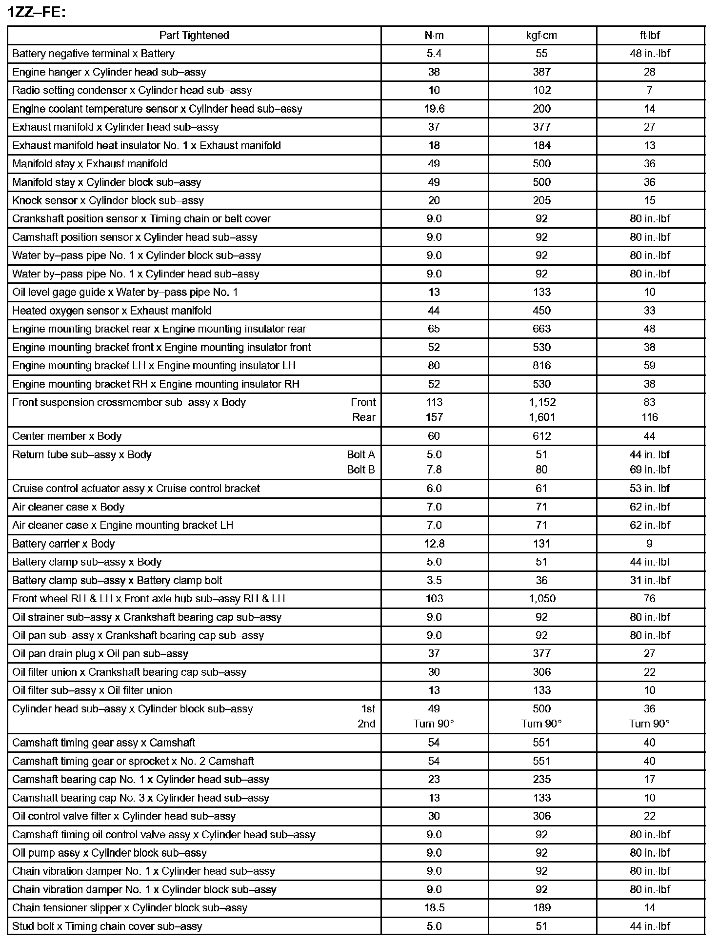 Engine Mechanical - Torque Specification Part 1: