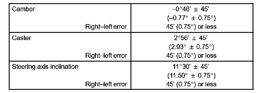 The body and suspension may be damaged if the camber is not correctly adjusted according to the above table.