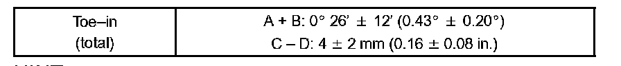 - If toe-in is not within the specified range, inspect the suspension parts and replace them if necessary.