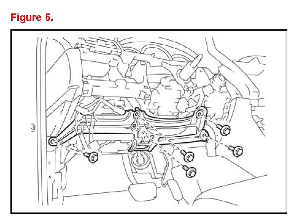 B. Remove the 5 bolts and the lower instrument panel insert sub-assembly LH.