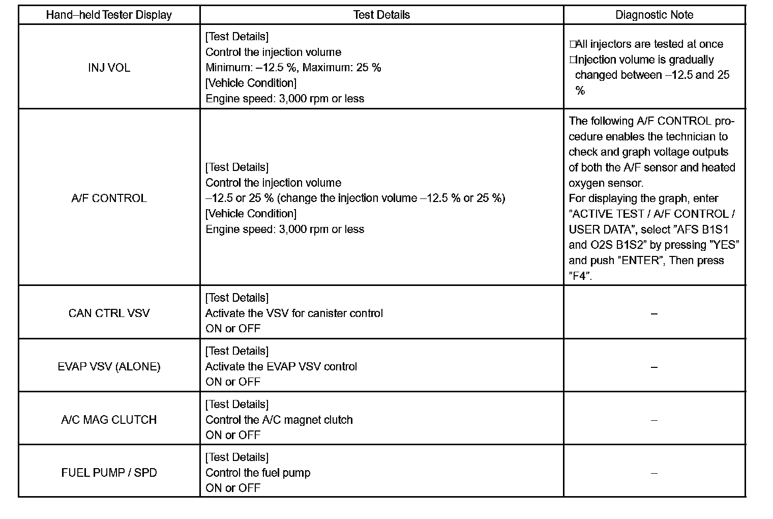 ACTIVE TESTHINT: Performing the hand-held tester's ACTIVE LIST allows relay, VSV, actuator and other items to be operated without removing any parts. Performing the ACTIVE LIST early in troubleshooting is one way to save time.