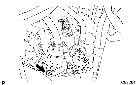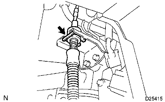 d) Remove the clip and disconnect the control cable from the control cable bracket.