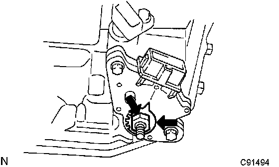 d) Remove the 2 bolts and pull out the park/neutral position switch.