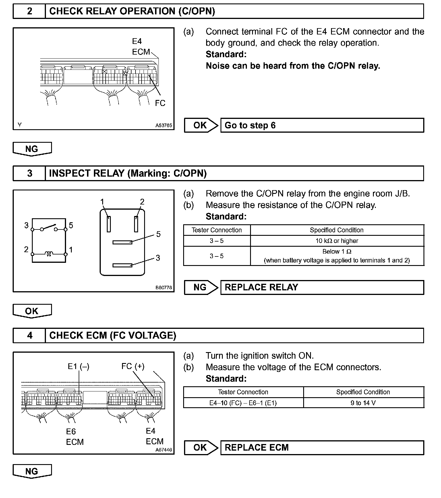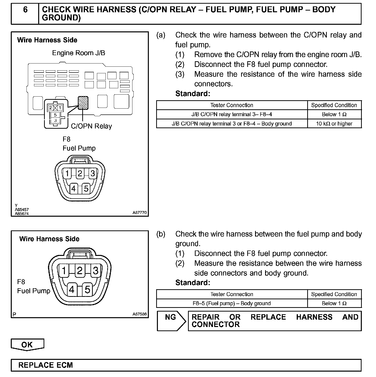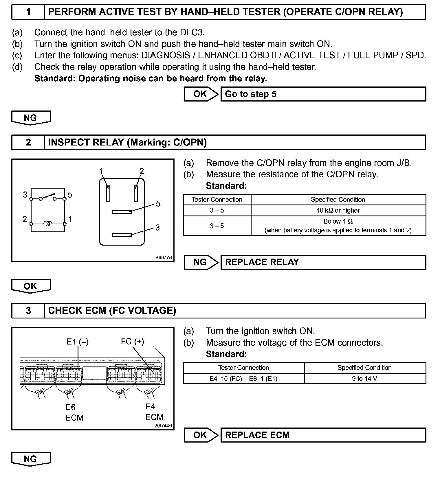 While the NE signal is generated and the engine is running, the ECM keeps Tr ON (C/OPN relay ON) and the fuel pump also keeps operating.
