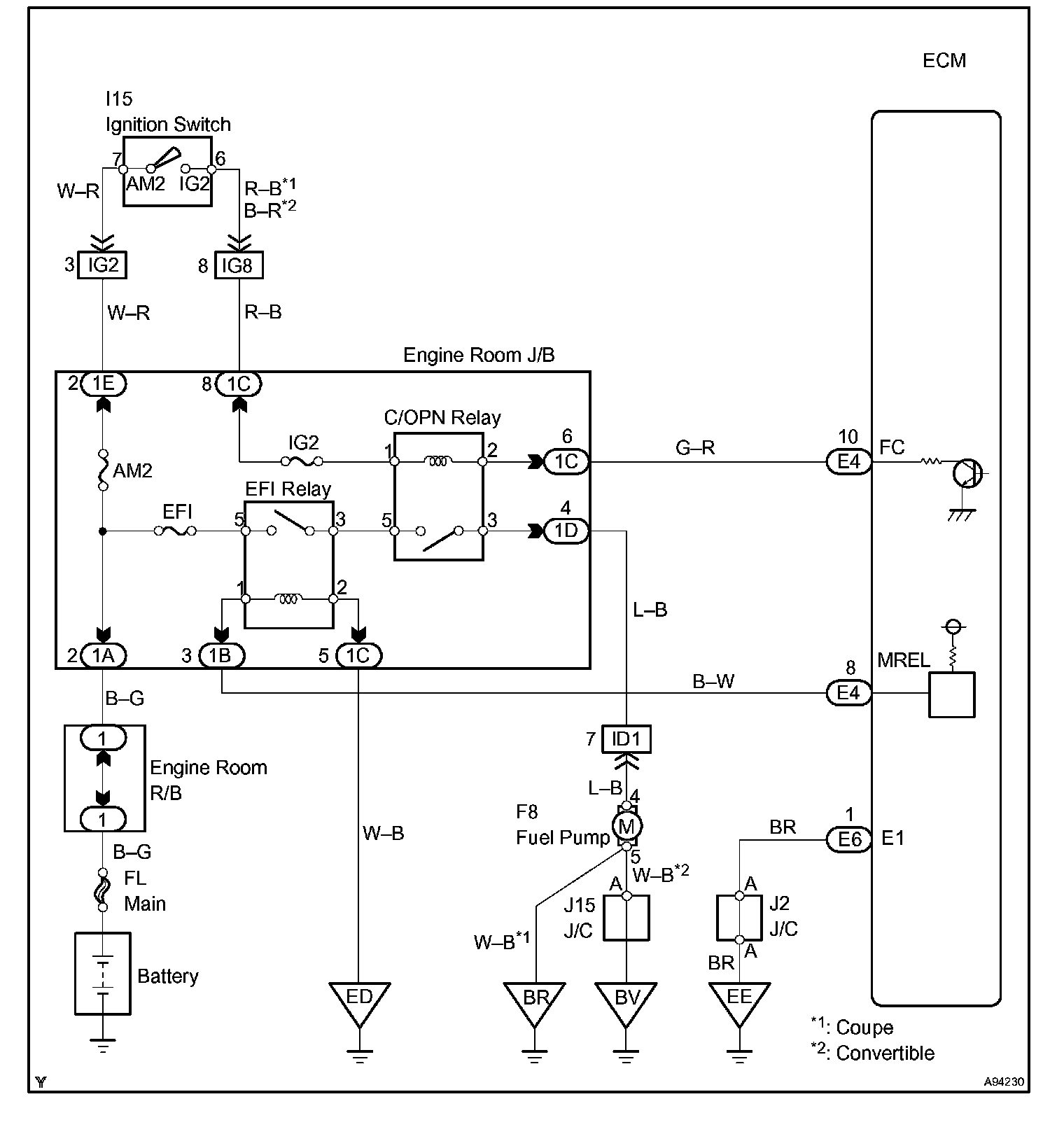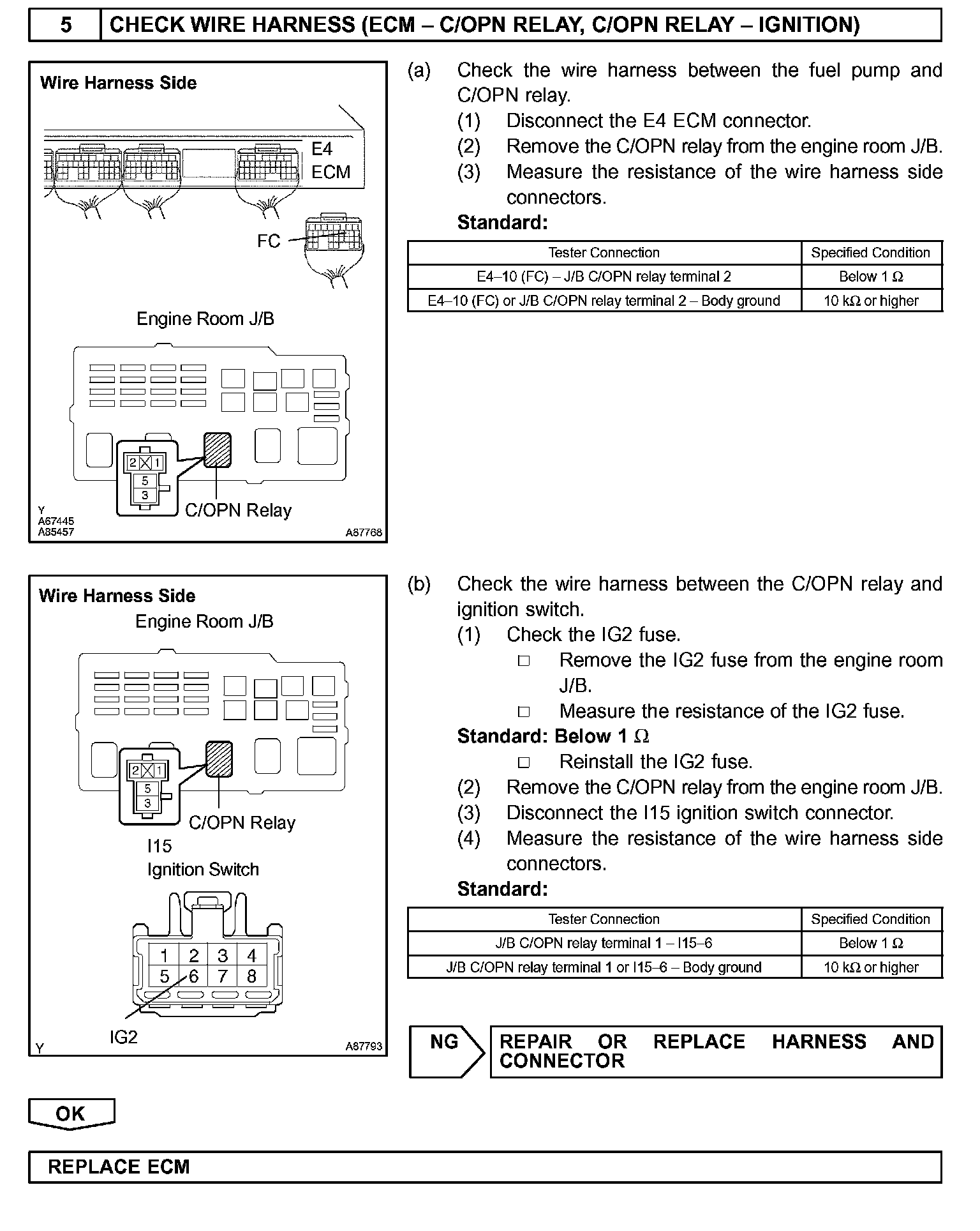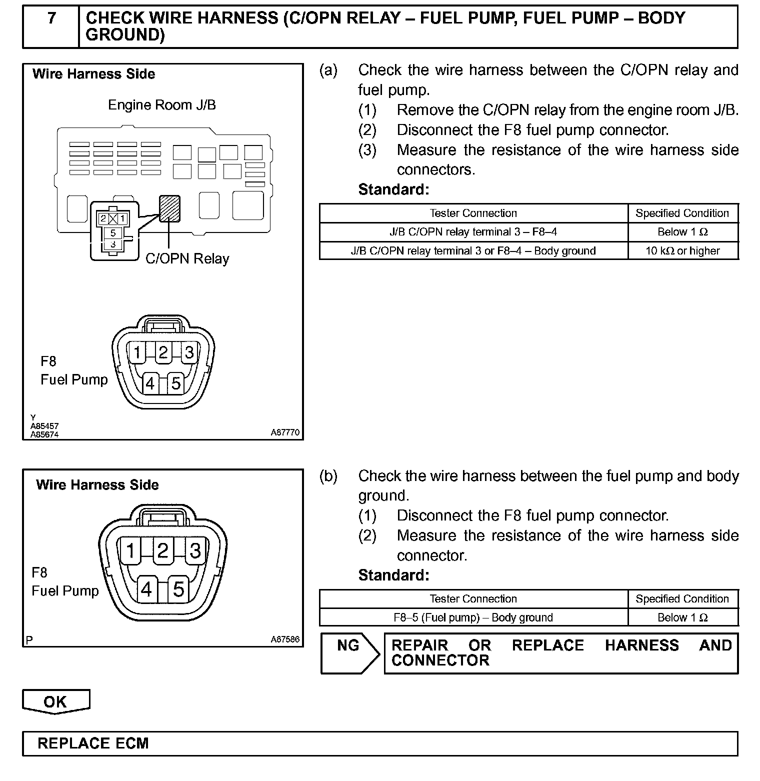 While the NE signal is generated and the engine is running, the ECM keeps Tr ON (C/OPN relay ON) and the fuel pump also keeps operating.