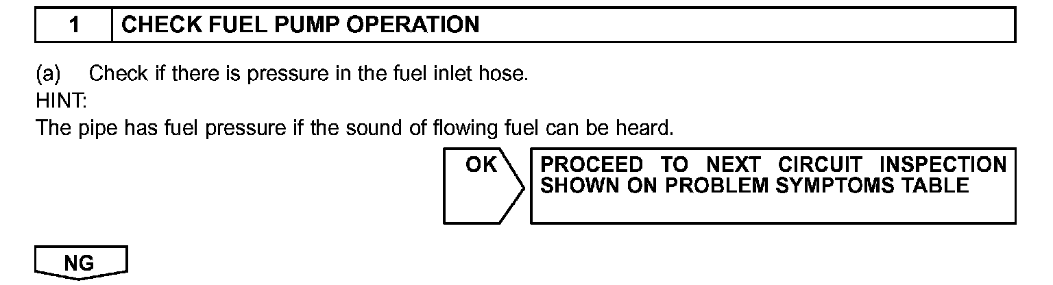 When the STA signal and NE signal are input to the ECM, Tr is turned ON, current flows to coil of the circuit opening relay (marking: C/OPN), the relay switches ON, power is supplied to the fuel pump and the fuel pump operates.