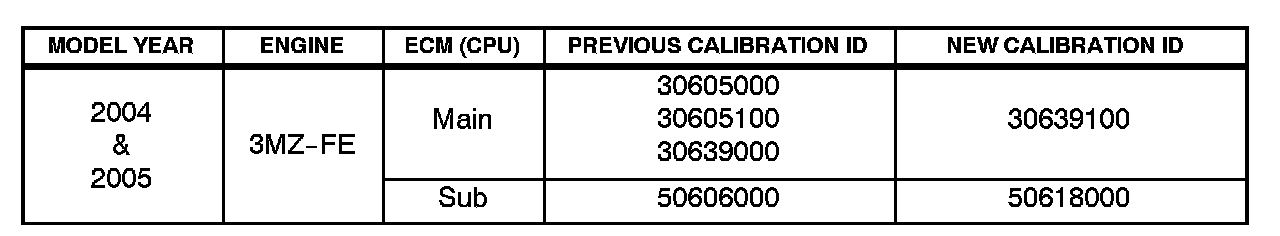 ^ Although the calibration description in the Calibration Update Wizard and on the Diagnostic Tester reads "04 Solara," these calibrations apply to 2004 and 2005 model year Solara vehicles produced before the Production Change Effective VINs shown in this TSB.