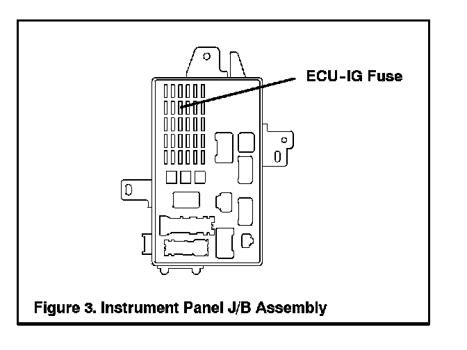 1. Remove the 10A ECU-IG fuse from the Instrument Panel Junction Block assembly. This action prevents possible activation of the ABS relay, resulting in ECM Reprogramming failure.