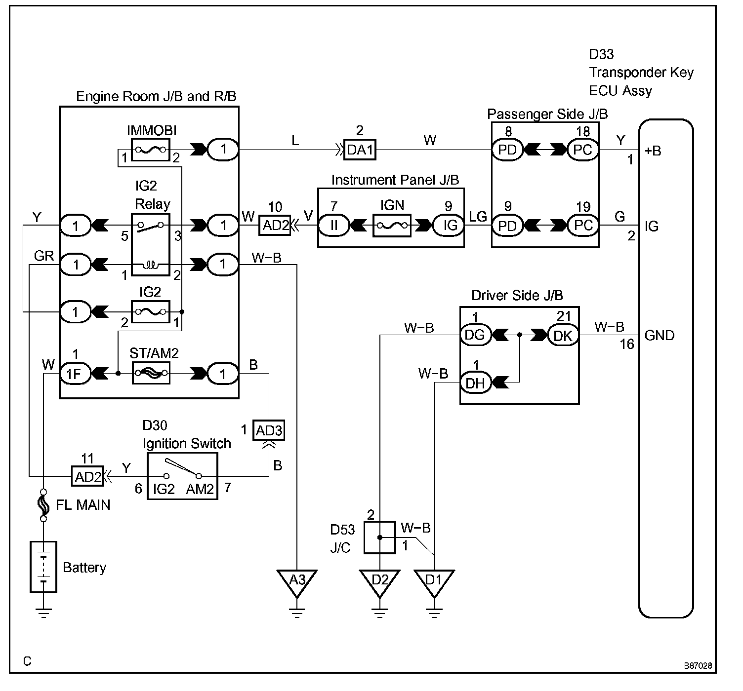 This circuit provides power to operate the transponder key ECU assembly.
