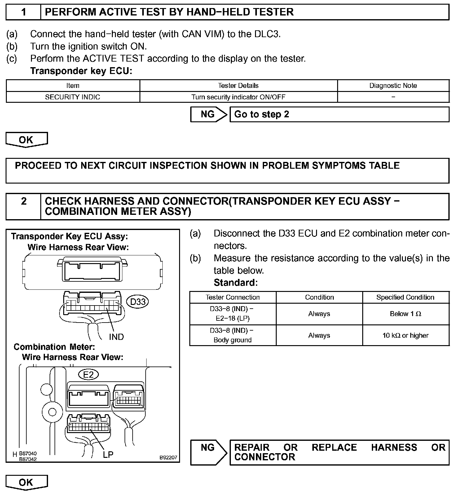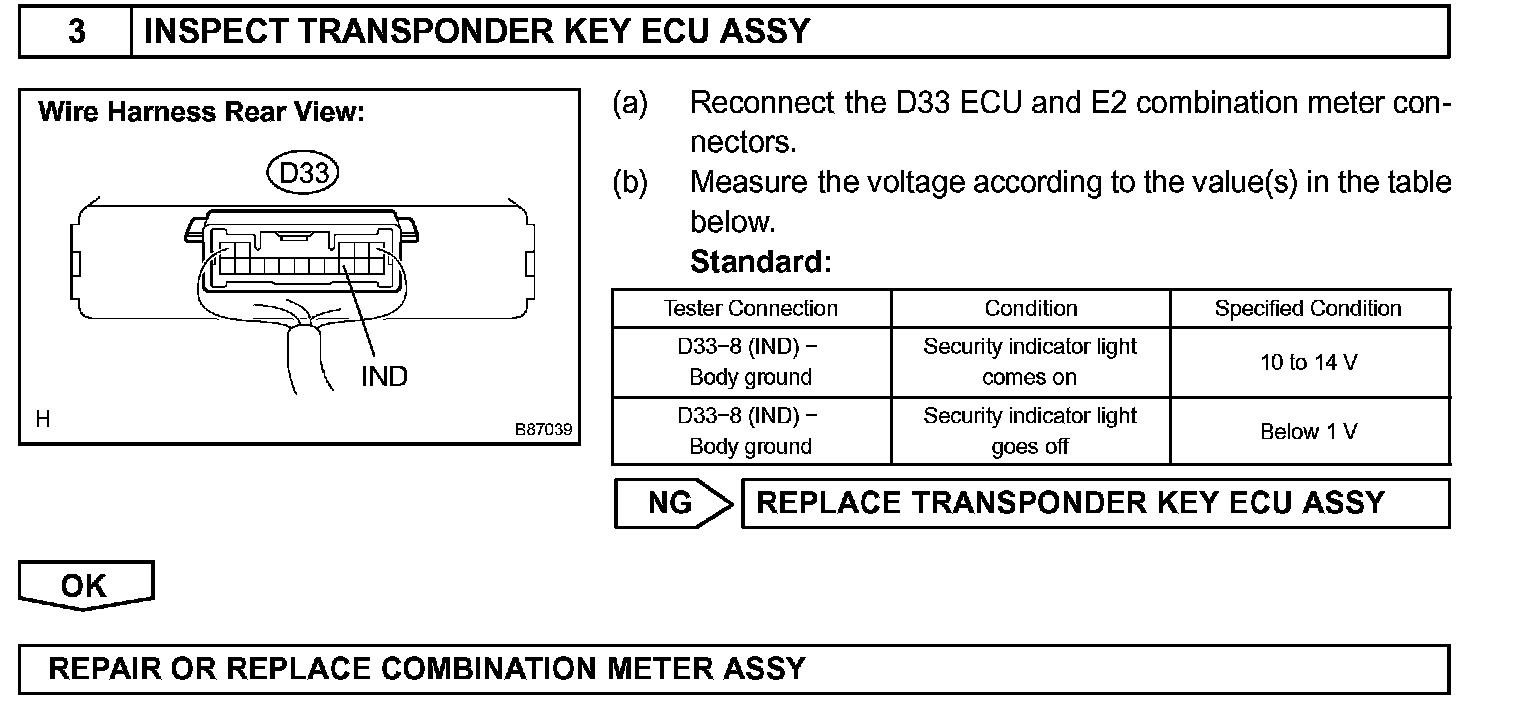 When the transponder key is registered, the transponder key ECU assembly outputs the key registration condition by lighting up, blinking or turning off the security indicator.