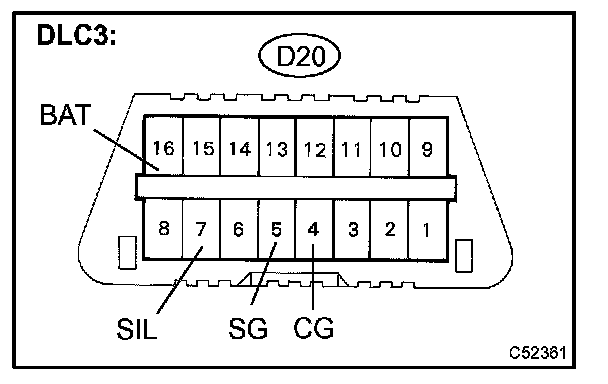 CHECK DLC3HINT: The vehicle uses ISO 15765-4 for its communication protocol. The terminal arrangement of the DLC3 complies with SAE J1962 and matches the ISO 15765-4 format.