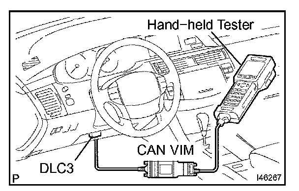 HINT: Connect the cable of the hand-held tester (with CAN VIM) to the DLC3, turn the ignition switch ON and attempt to use the hand-held tester. If the screen displays UNABLE TO CONNECT TO VEHICLE, a problem may be on the vehicle side or tester side.