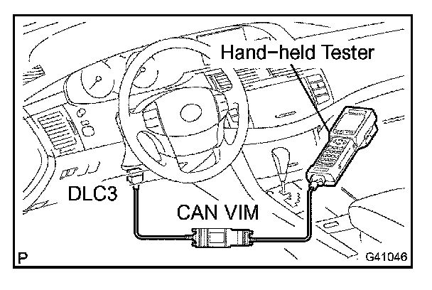 HINT: Connect the cable of the hand-held tester to the DLC3, turn the engine switch on (IG) and attempt to use the hand-held tester. If the screen displays a communication error message, a problem may be on the vehicle side or tester side.