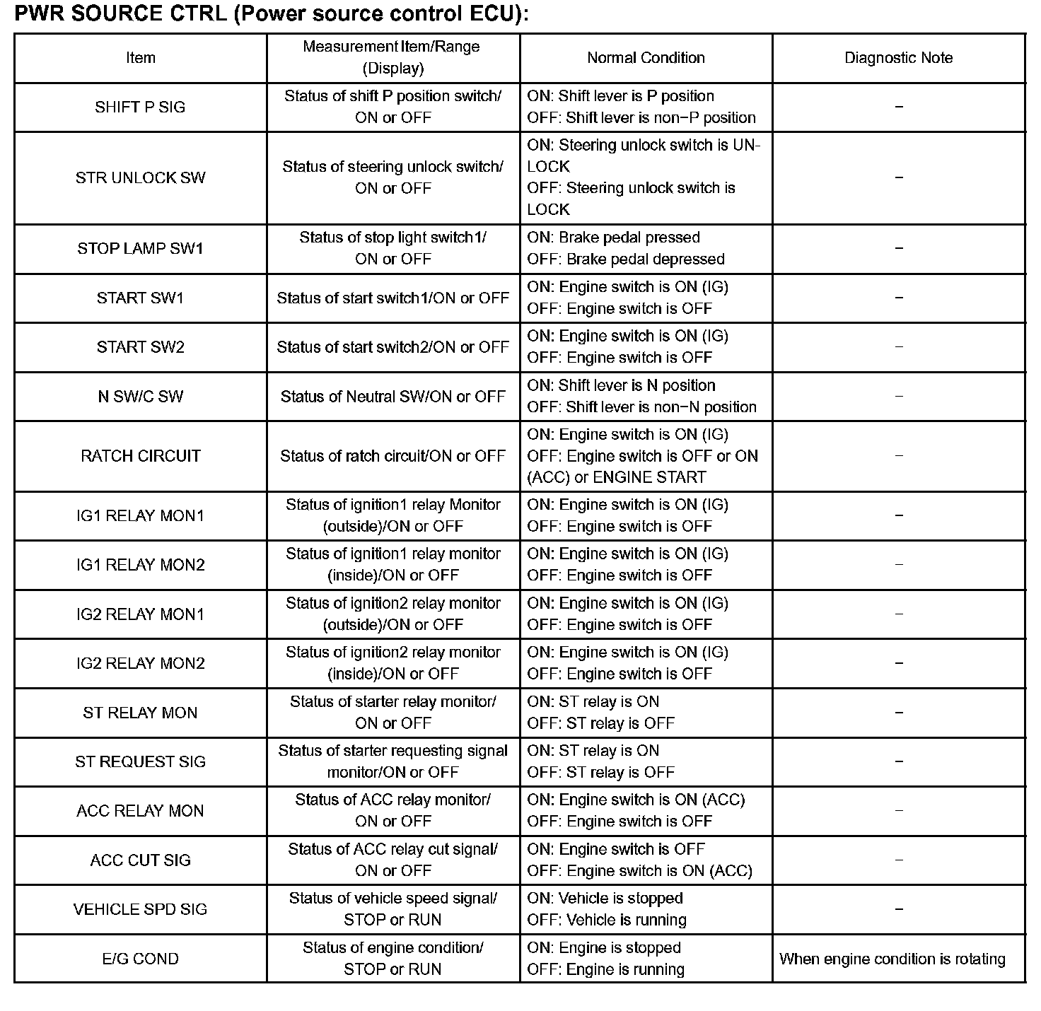 c. Following the display on the tester, select "DATA LIST". PWR SOURCE CTRL (Power source control ECU):