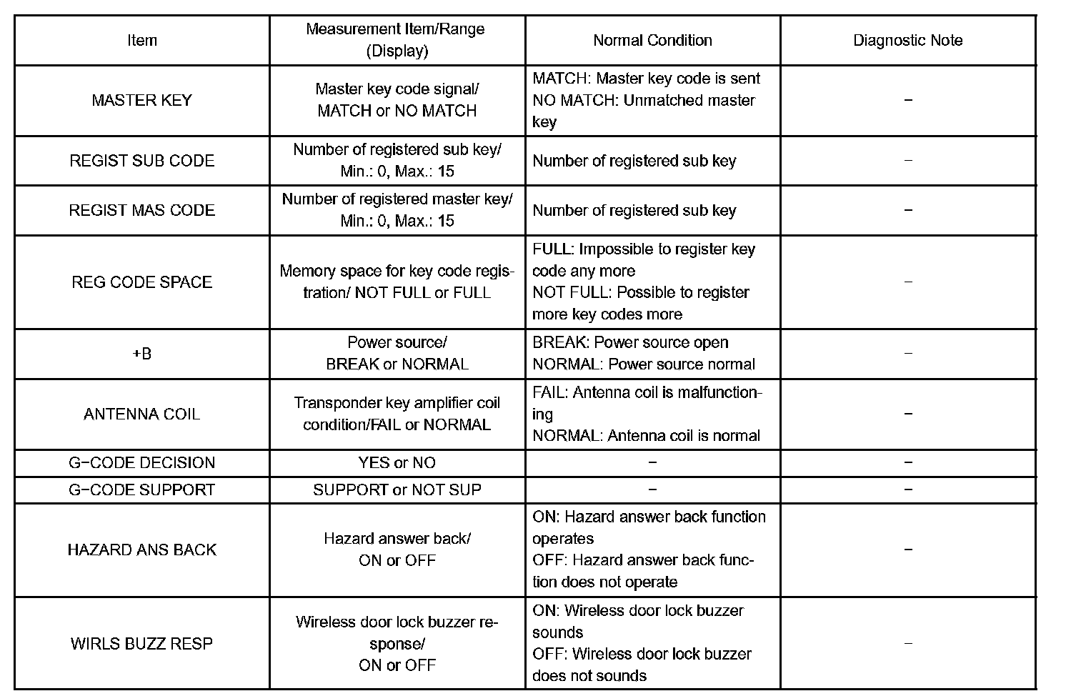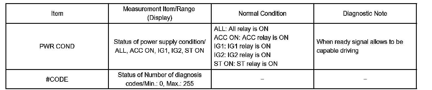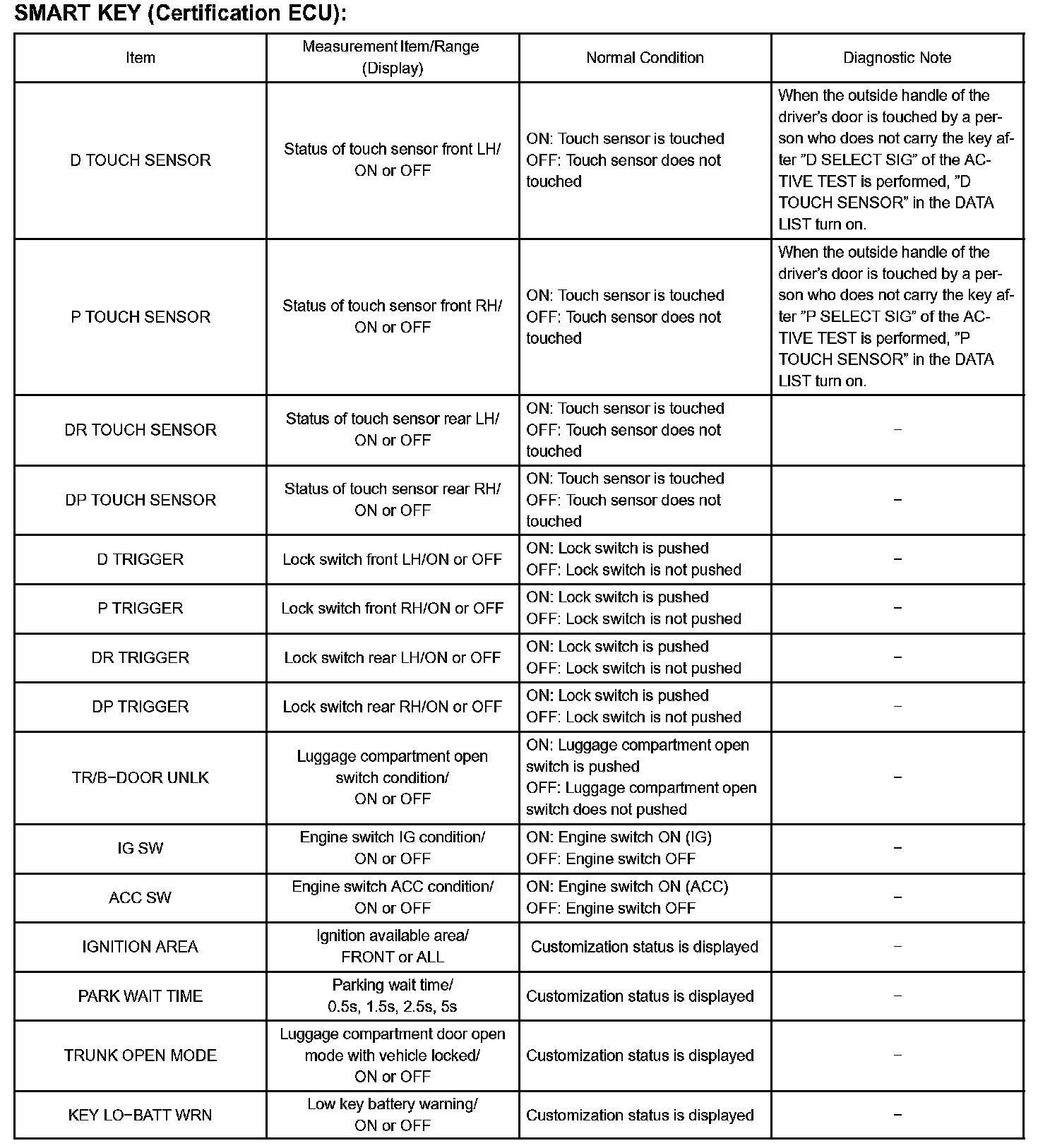 DATA LISTHINT: By accessing the DATA LIST displayed on the hand-held tester, you can perform such functions as reading the values of switches and sensors without removing any parts. Reading the DATA LIST is the first step of troubleshooting and is one method to shorten labor time.