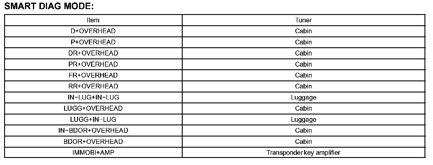 - The smart key system diagnostic mode can be used to check that the key and each tuner operate normally without removing the tuners from the vehicle.