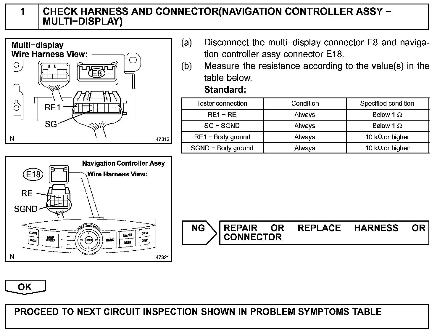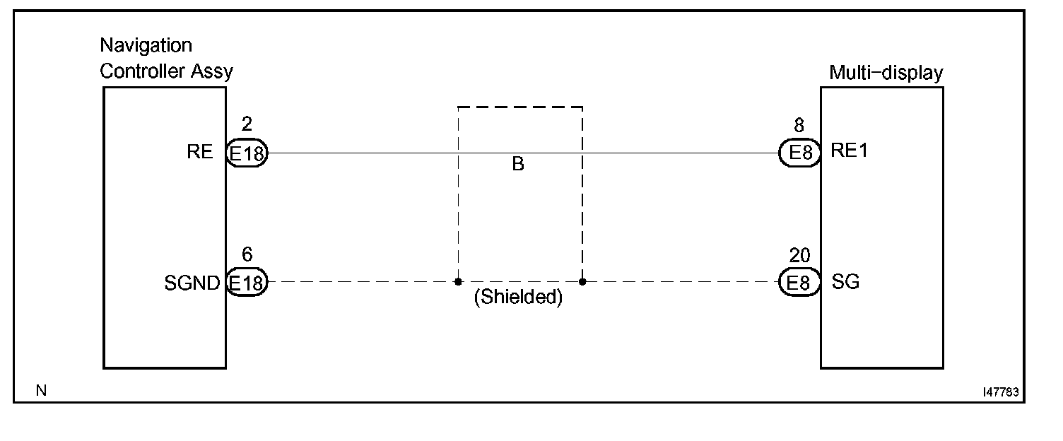 This circuit is from navigation controller assembly to the multi-display. This is a communication circuit. If an open or short occurs, navigation control will be impossible.