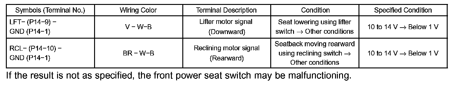Terminals Of Control Module/Pinouts - Position Control ECU & Switch Assy (Power Seat Control ECU) (Part 2):