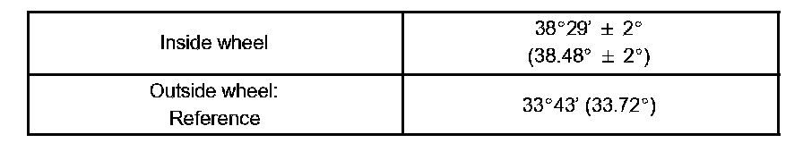 The body and suspension may be damaged if the camber is not correctly adjusted according to the above table.