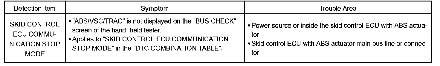 Skid Control ECU Communication Stop Mode - w/o VSC