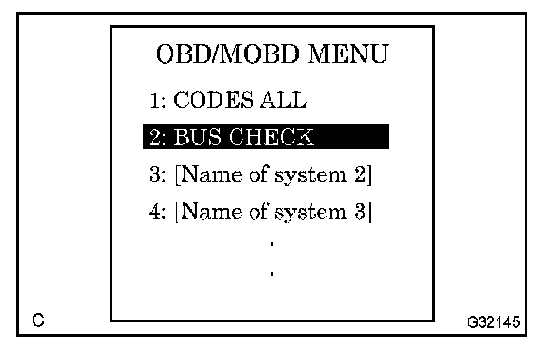 a. Select "BUS CHECK" from the "OBD/MOBD MENU" screen.