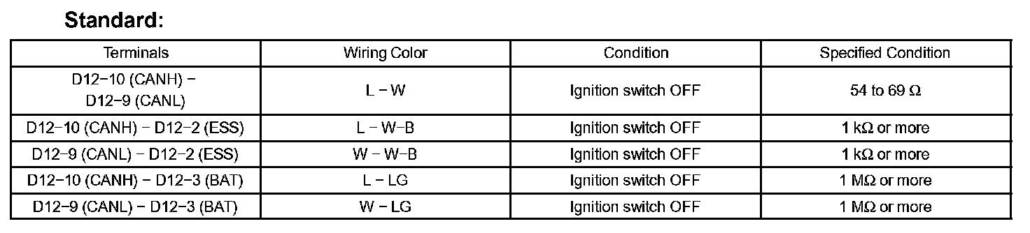 HINT: This section describes the standard CAN values for all CAN related components.
