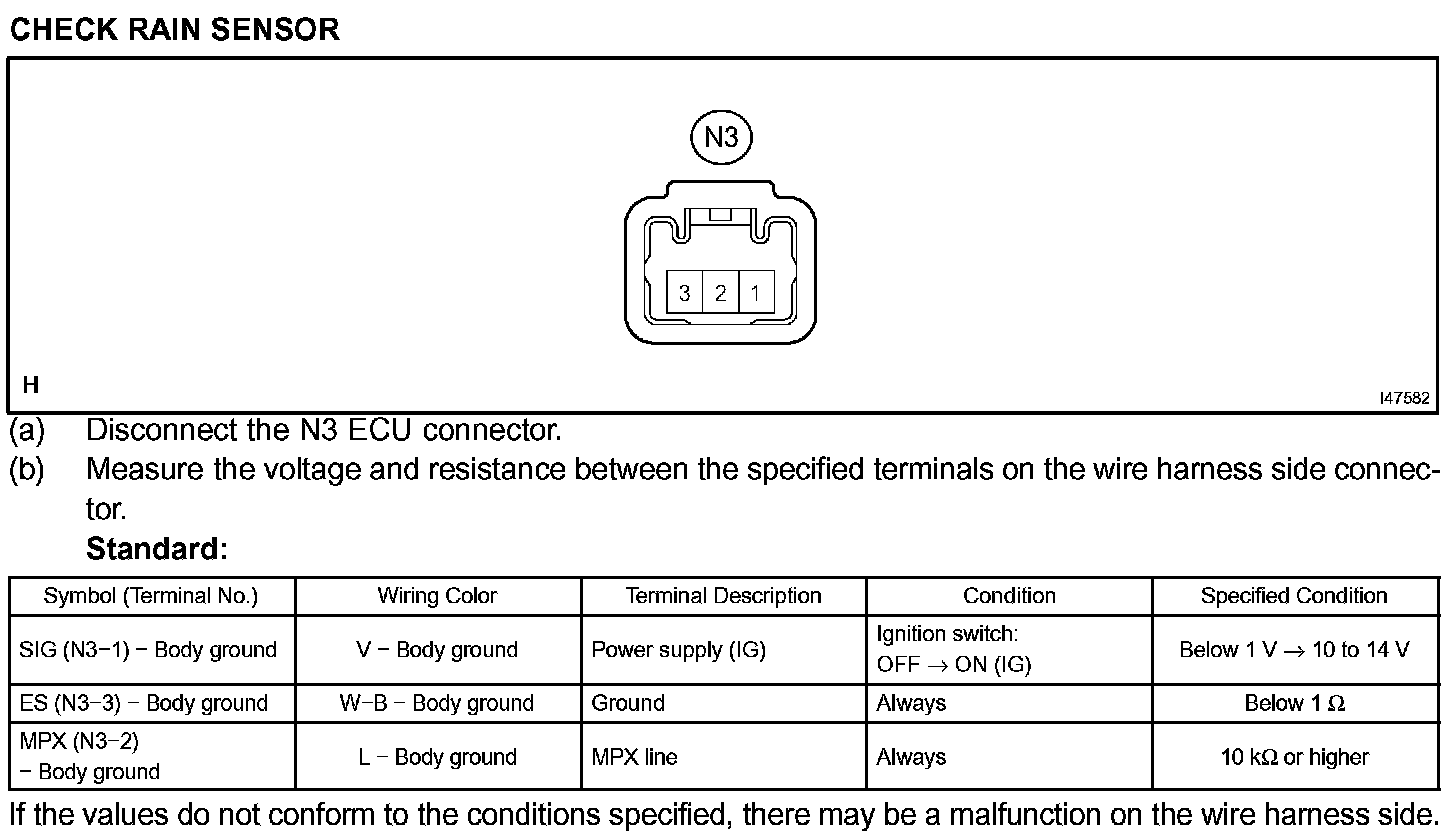 Terminals Of Control Module/Pinouts - Check Rain Sensor:
