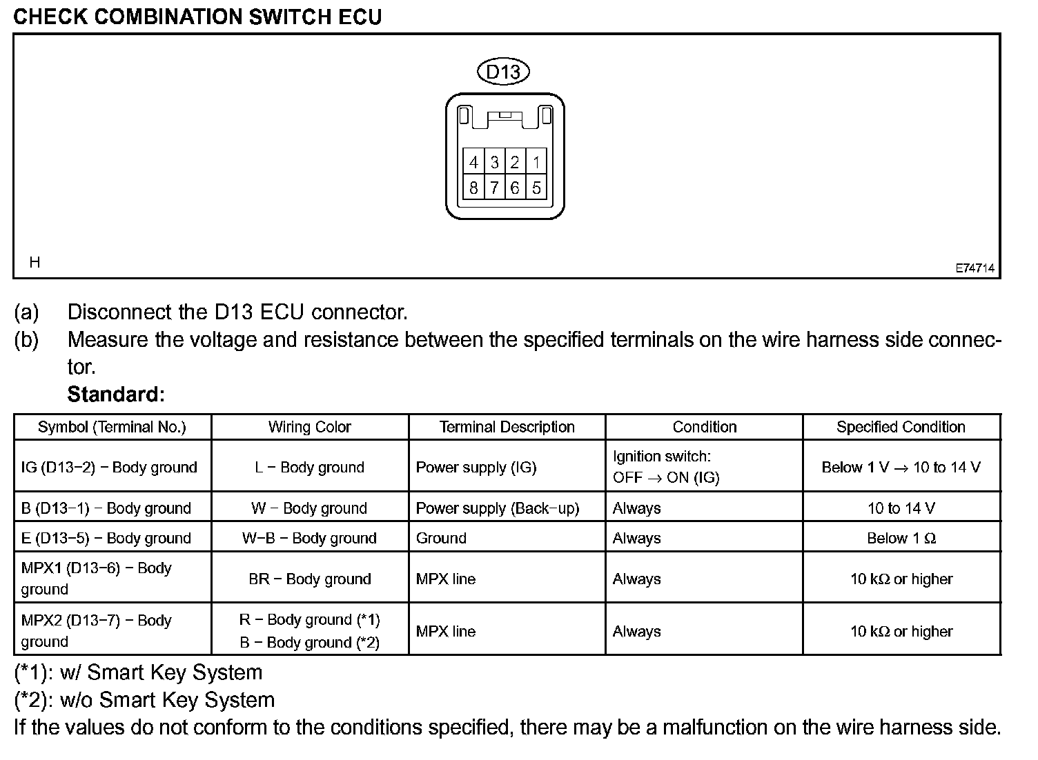 Terminals Of Control Module/Pinouts - Check Combination Switch ECU: