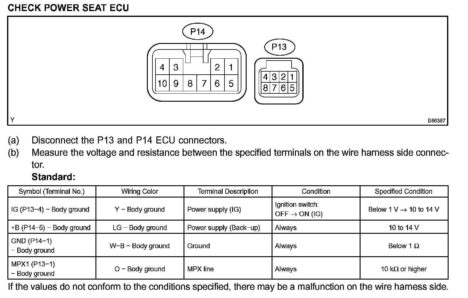 Terminals Of Control Module/Pinouts - Check Power Seat ECU: