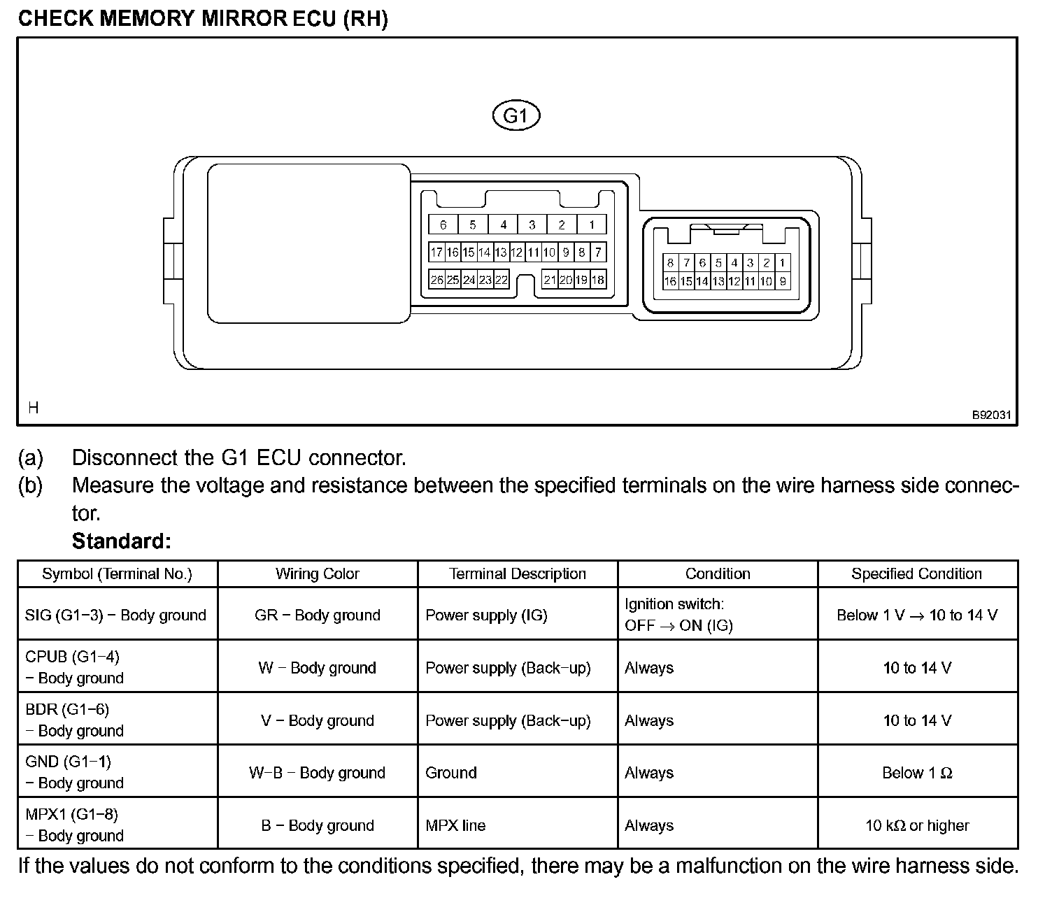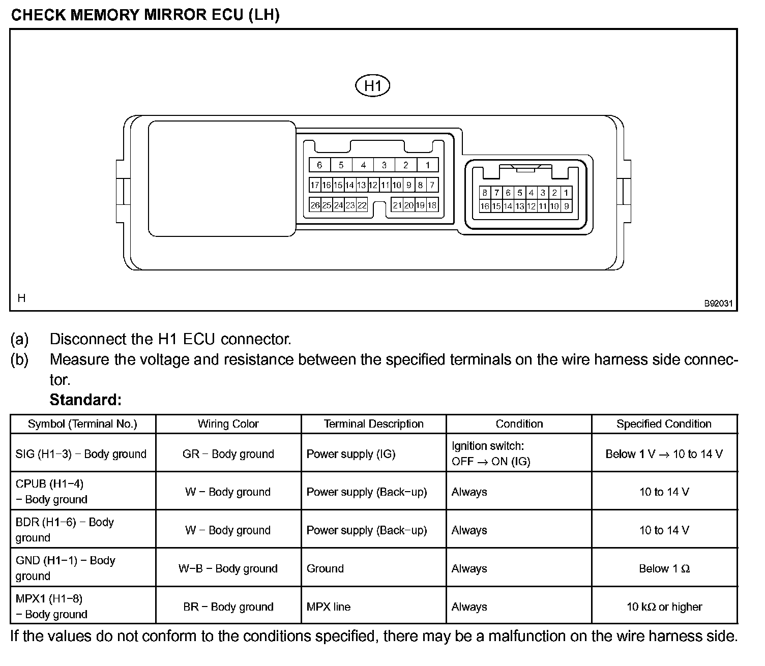 Terminals Of Control Module/Pinouts - Check Memory Mirror ECU (LH):