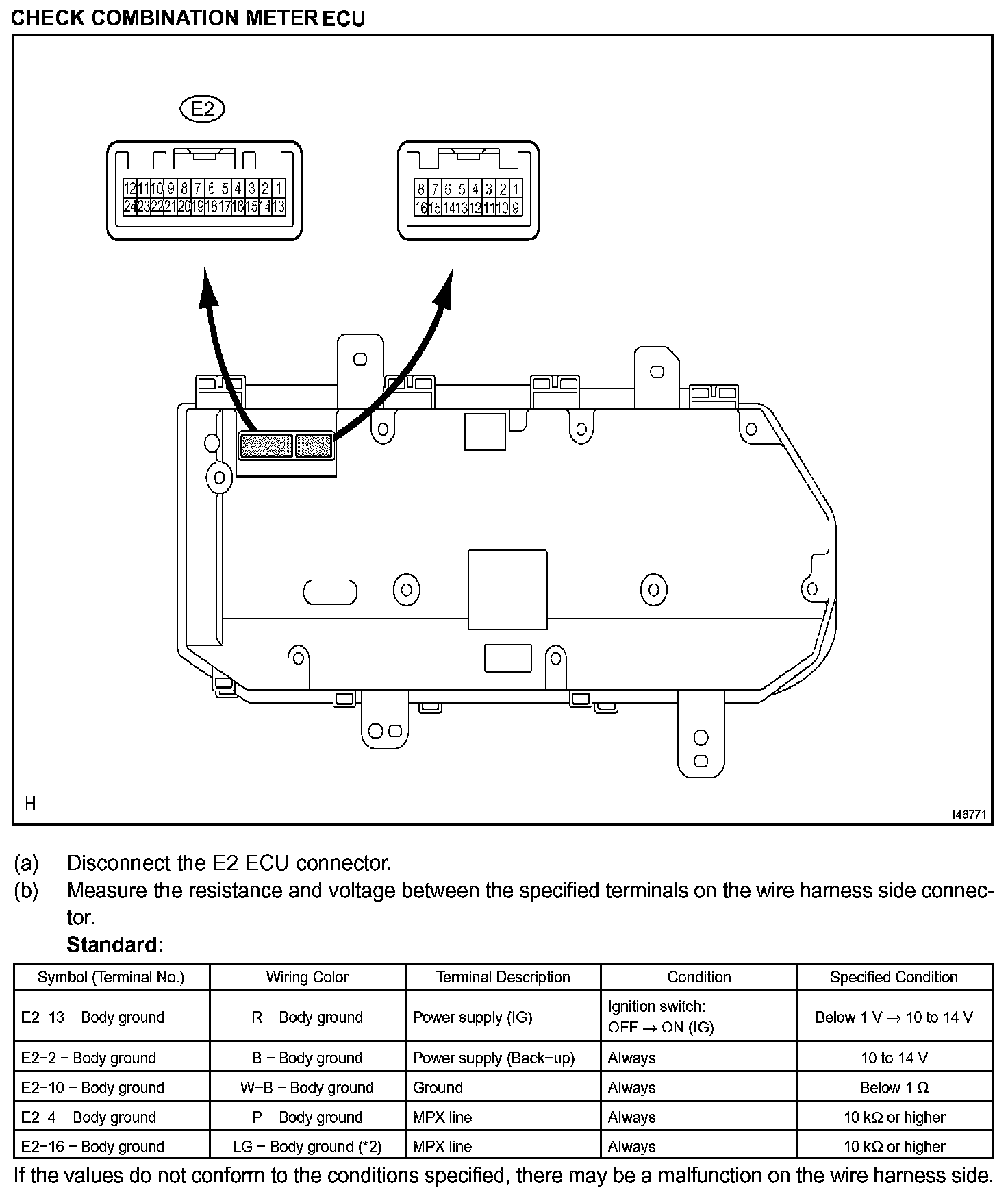 Terminals Of Control Module/Pinouts - Check Combination Meter ECU: