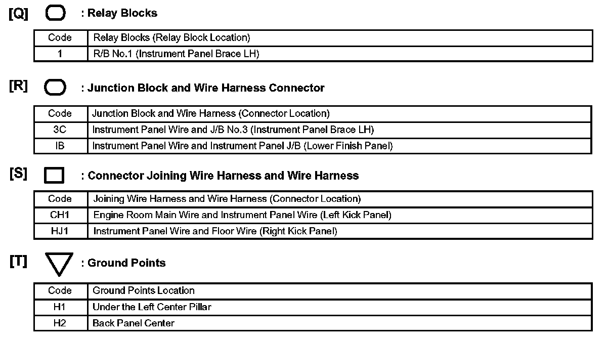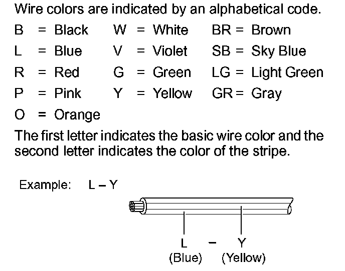 The first character of the code indicates the alphabetical code allocated to the wire harness. The second character indicates a serial number used to distinguish between the ground points in cases when more than one ground point exist on the same wire harness.