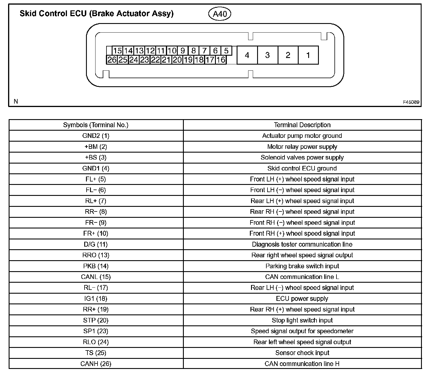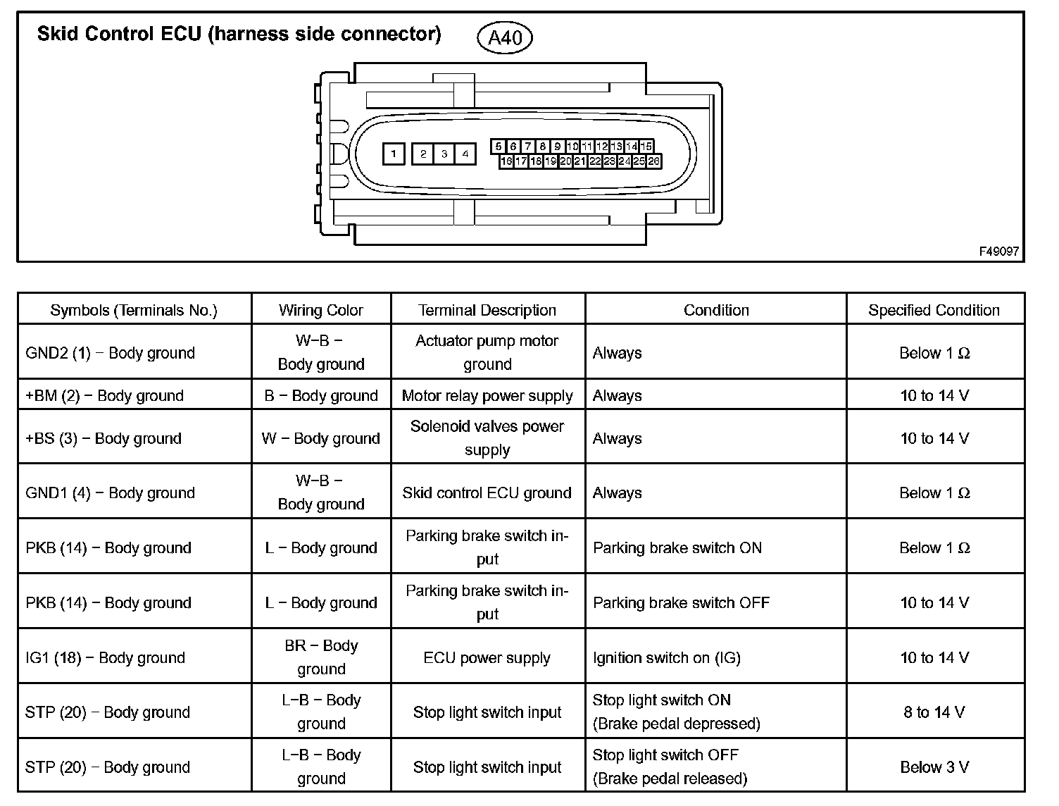 HINT: Voltage cannot be measured with the connector connected to the skid control ECU as the connector is watertight.