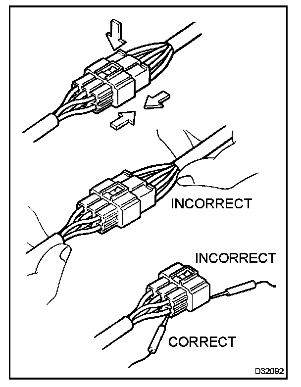 5. If checking a connector with a TOYOTA electrical tester, check the connector from the backside (harness side) using a mini test lead.