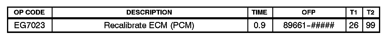 ^ Calibration ID(s): [Refer to the Calibration Identification Chart for the NEW CALIBRATION ID]