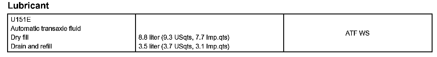 When changing the automatic transmission fluid, use only "Toyota Genuine ATF WS" (ATF JWS3324 or NWS9638) to aid in assuring maximum transaxle performance.