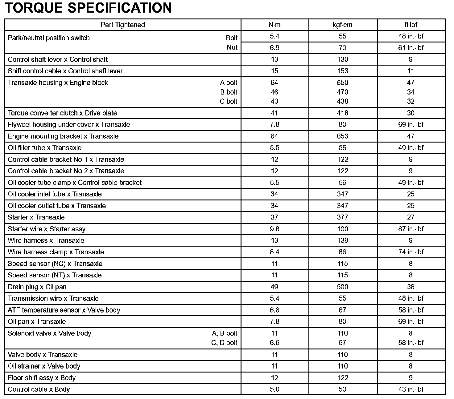Automatic Transmission / Transaxle-Torque Specification: