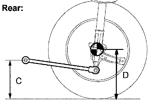 HINT: Bounce the vehicle at the corners up and down to stabilize the suspension and inspect the vehicle height.