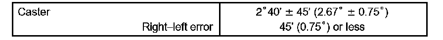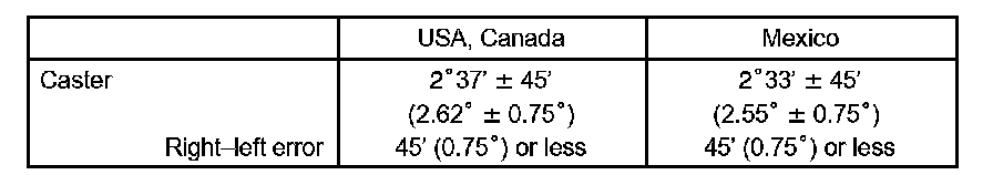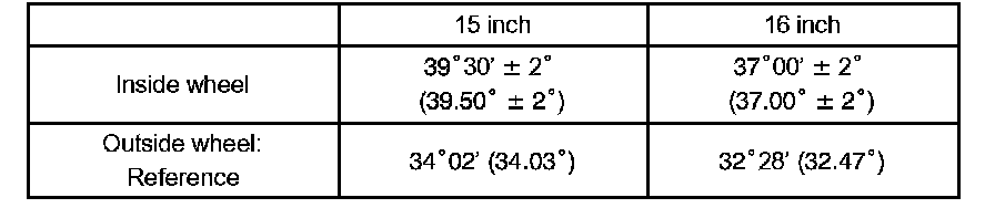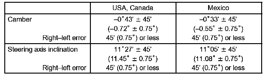 The body and suspension may be damaged if the camber is not correctly adjusted according to the above table.