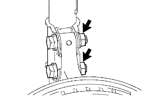 b. Remove the 2 nuts on the lower side of the shock absorber assembly front LH.